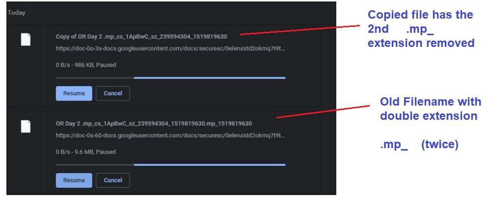 Screen shot of both before and after copy files being downloaded: