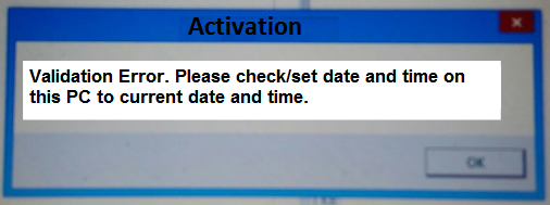 1) If the Date/Time on the activation PC is more than 10 minutes + or - the current time.