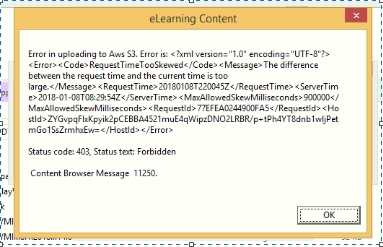 1) Following error shows up when uploading camera snaps to AWS Cloud.