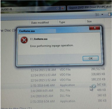 1) Error performing inpage operation.
