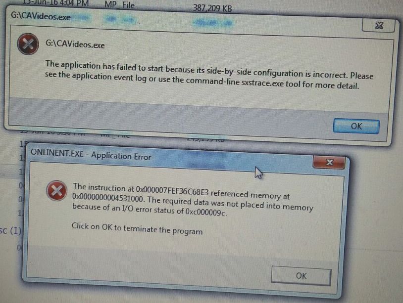 3) An ONLINENT.EXE error like the following shows up: