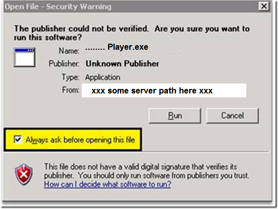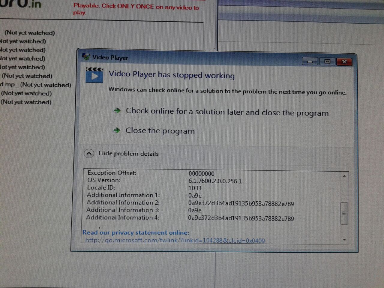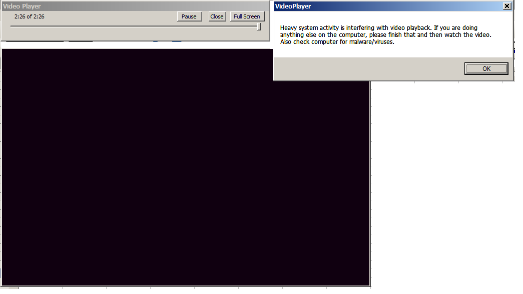 iii) Anti-virus software on the system attempts to scan VideoPlayer.exe and/or the video file