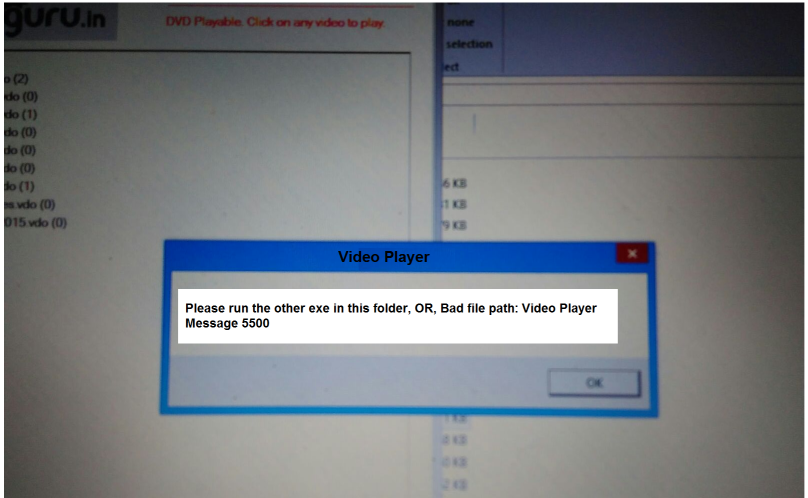 Note: That if the exe was not properly written to the media, then the Video files themselves