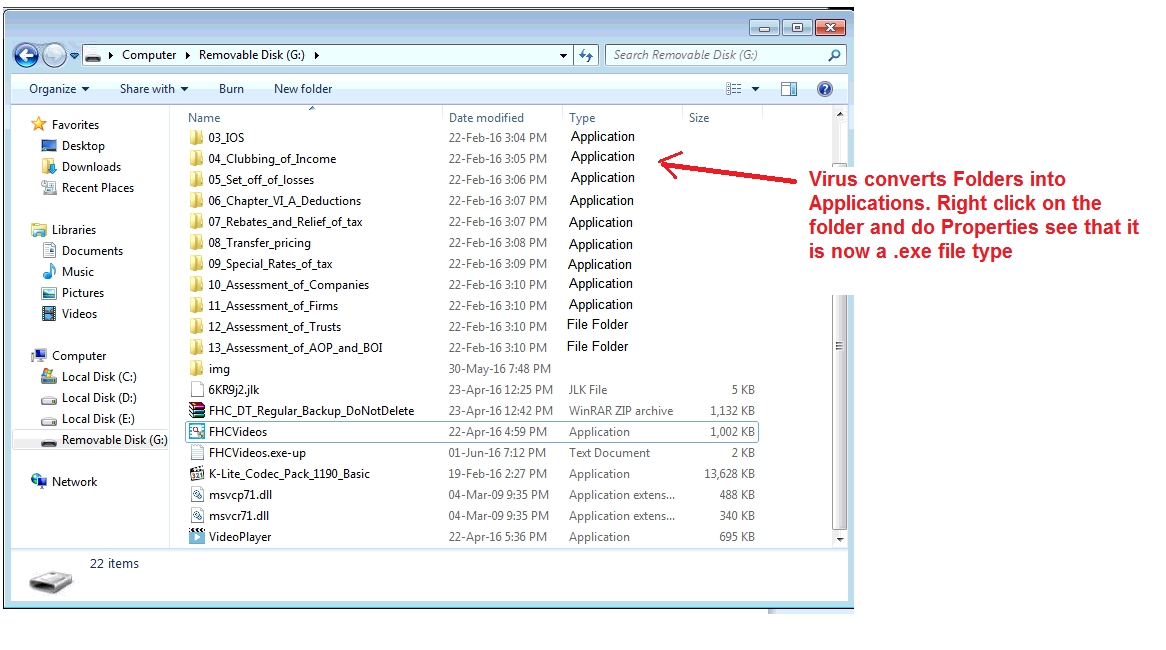 There is another type of virus that converts 'File Folders' into 'Application' type as shown below: